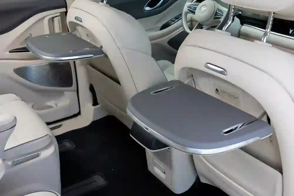 Интерьер Voyah МЕЧТА / DREAM не утяжелен вычурными формами. Его можно назвать традиционным салоном минивэна верхнеуровневого сегмента. Как только вы оказываетесь на втором ряду сидений, становится понятно, что в этом автомобиле главный отнюдь не водитель (кстати, как раз он пусть и озадачится поиском зарядки). Как и в седанах премиум-класса, все главные опции сосредоточены в руках пассажиров.