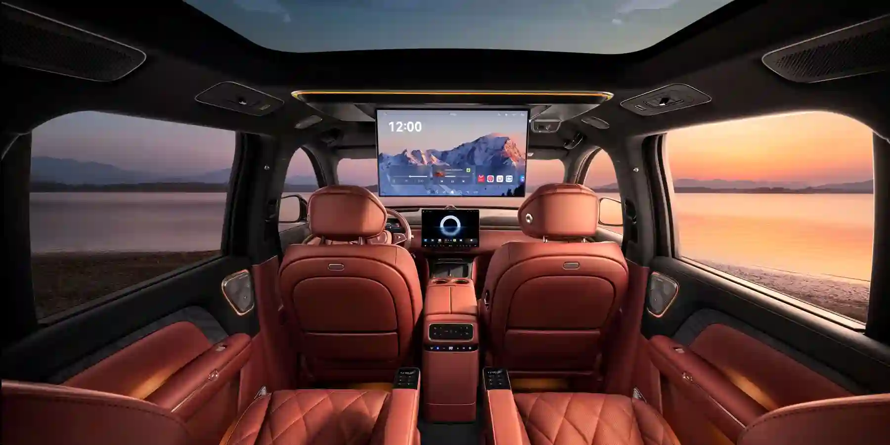 Сверхсовременная акустическая система Премиальная аудиосистема VOYAH мощностью 2300 Вт с 32 динамиками, включая 8 в подголовниках, и 36-канальным усилителем создает панорамный 3D-звук уровня концертного зала для каждого пассажира.