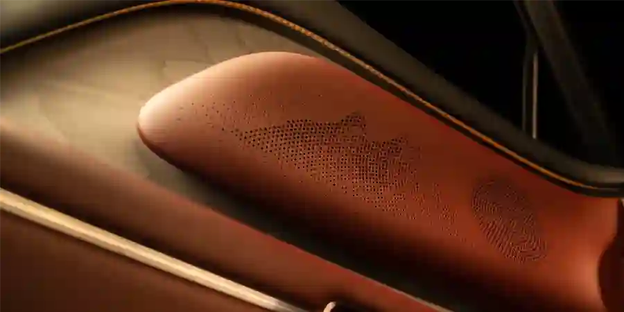 В отделке используются материалы безупречного качества. В обивке кресел и панелей используется перфорированная эко-кожа, отвечающая строгому стандарту качества с ультратонкими отверстиями диаметром менее 0,9 мм, формирующими матричный рисунок, который усиливает игру света и тени.