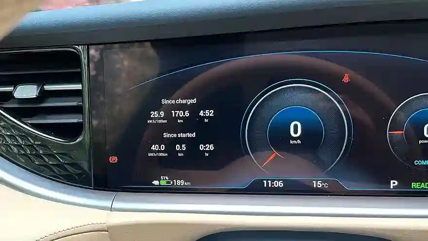 Примечательно, что меню медиасистемы предлагает выбор формата отображения  оставшегося запаса хода. Есть вариант по циклу CLTC – но это далекий от реальности оптимизм. Завышение на четверть или даже на треть. Счетчик заработает максимально честно, причем даже в стиле машин с ДВС: начинаешь ехать экономично, и запас хода увеличивается. Большинство электромобилей ведут только обратный отсчет оставшегося пробега с разной скоростью, а тут прямо-таки появляется стимул поработать над стилем вождения.